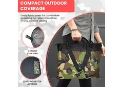The CamoBags Outdoor Packable Blanket is the perfect companion for camping, hiking, travel, and every adventure in between. Measuring a spacious 70"x56" when fully open, this lightweight water-resistant outdoor packable blanket folds neatly into its own tote with a convenient zipper closure, compacting to just 19"x14.5"x3" for effortless portability. An adjustable and removable carrying strap makes transport a breeze, while deep front and back storage pockets add practical everyday utility. Whether at a stadium, beach, or campsite, this blanket is always ready to go. Available in Army Green, Brown, Dark Green, and Woodland Camo — only at CamoBags.
