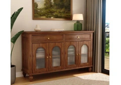 Display your dinnerware in style with this stunning glass crockery unit. Featuring tempered glass doors and wooden framing, it serves as both a crockery cupboard and a display piece for your kitchen crockery. Its compact yet spacious design makes it ideal for use as a crockery almirah for kitchen or dining area. With multiple shelves and refined craftsmanship, this kitchen crockery cabinet perfectly blends beauty and practicality. Elevate your interiors with this timeless crockery unit.