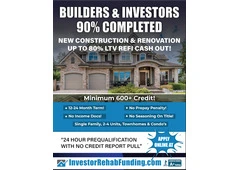 Check with seller BUILDERS and FIX & FLIP INVESTORS–CASHOUT REFI ON 90% COMPLETED HOMES! Atlanta